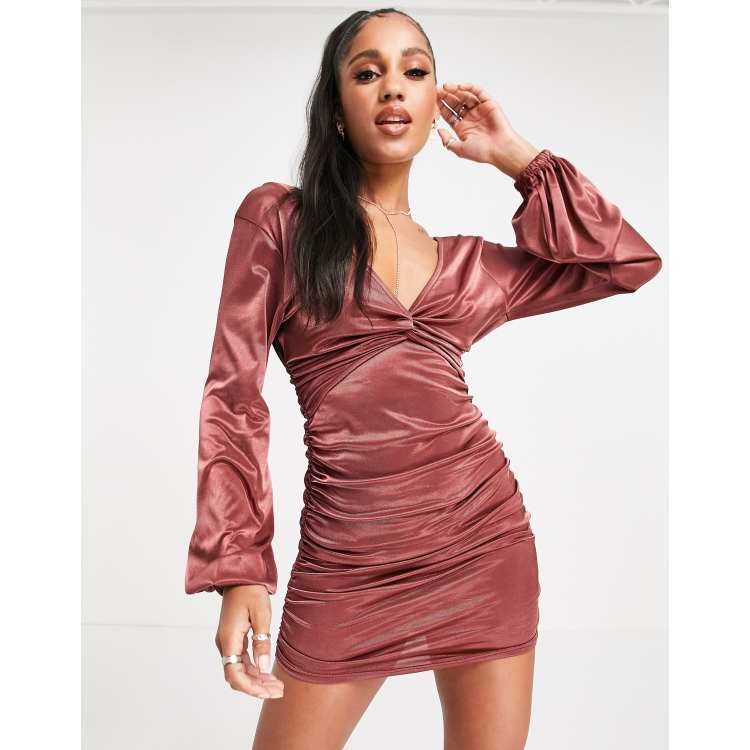 Product Name: Long sleeve satin bodycon dress on sale