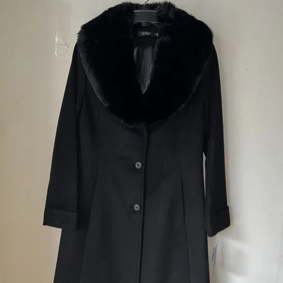 Product Name: Wool blend faux fur shawl collar coat on sale