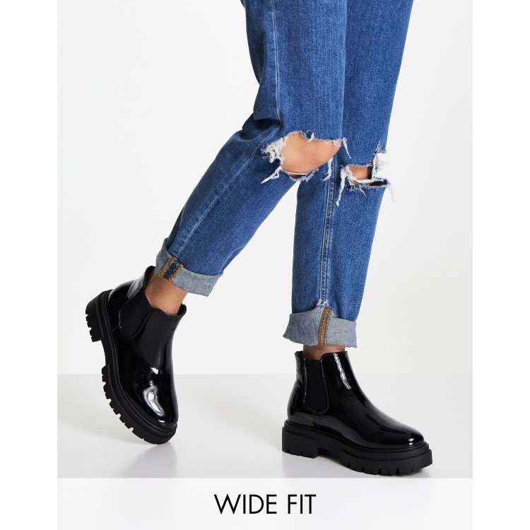 Product Name: Black wide fit chunky patent boots on sale