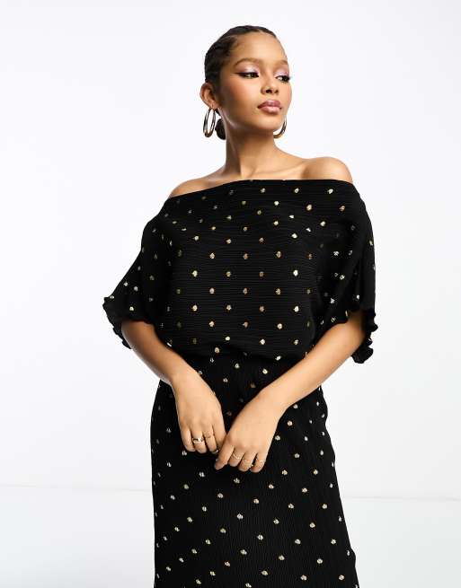 Product Name: Black polka dot off the shoulder dress on sale