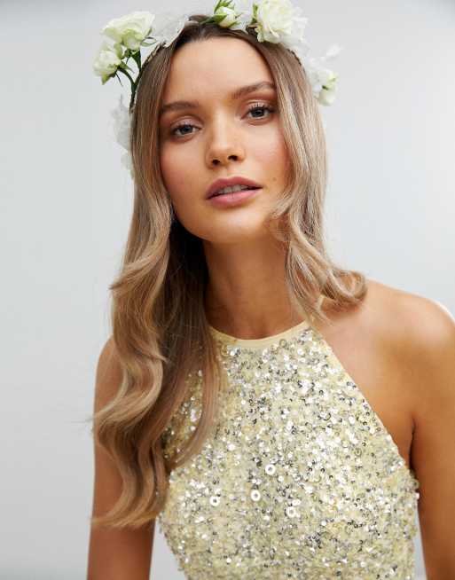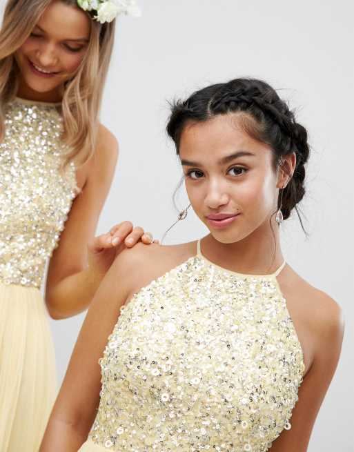 Product Name: Maya halterneck delicate sequin detail tulle maxi dress in lemon on sale