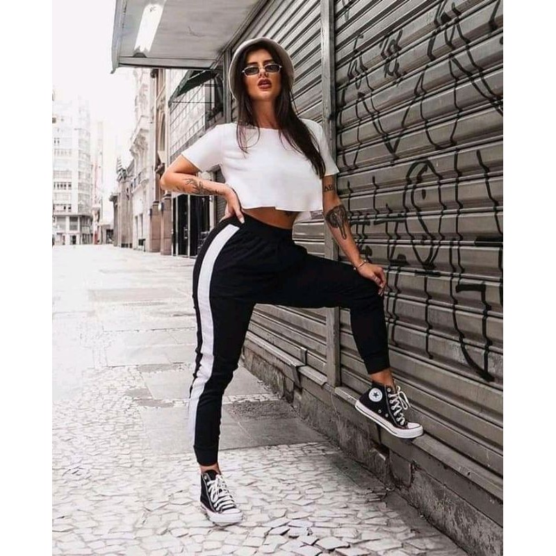 Product Name: Calça jogger feminina com listra lateral on sale