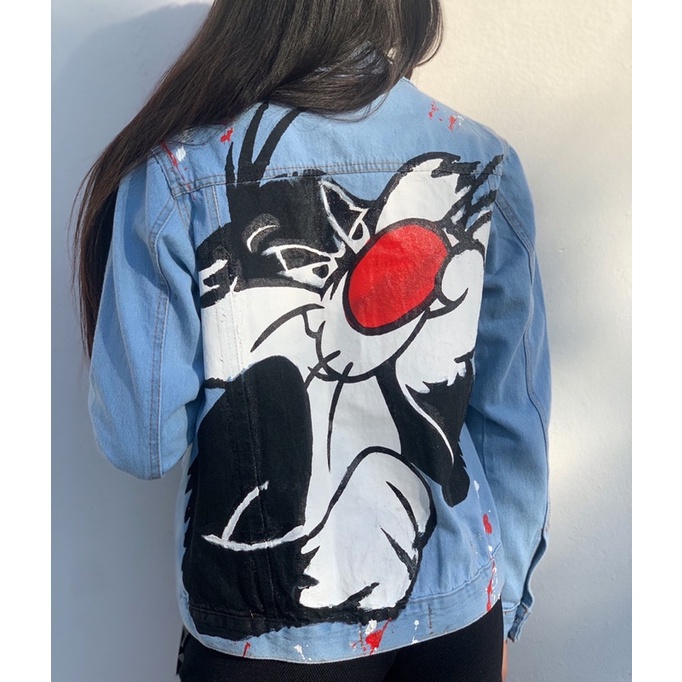 Jaqueta Jeans Personalizada Frajola Pinturas Com Tinta Tamanho