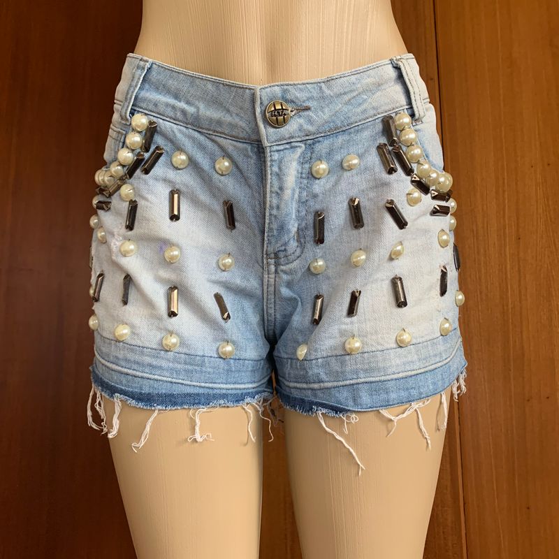 Product Name: Short jeans bordado com pedras on sale