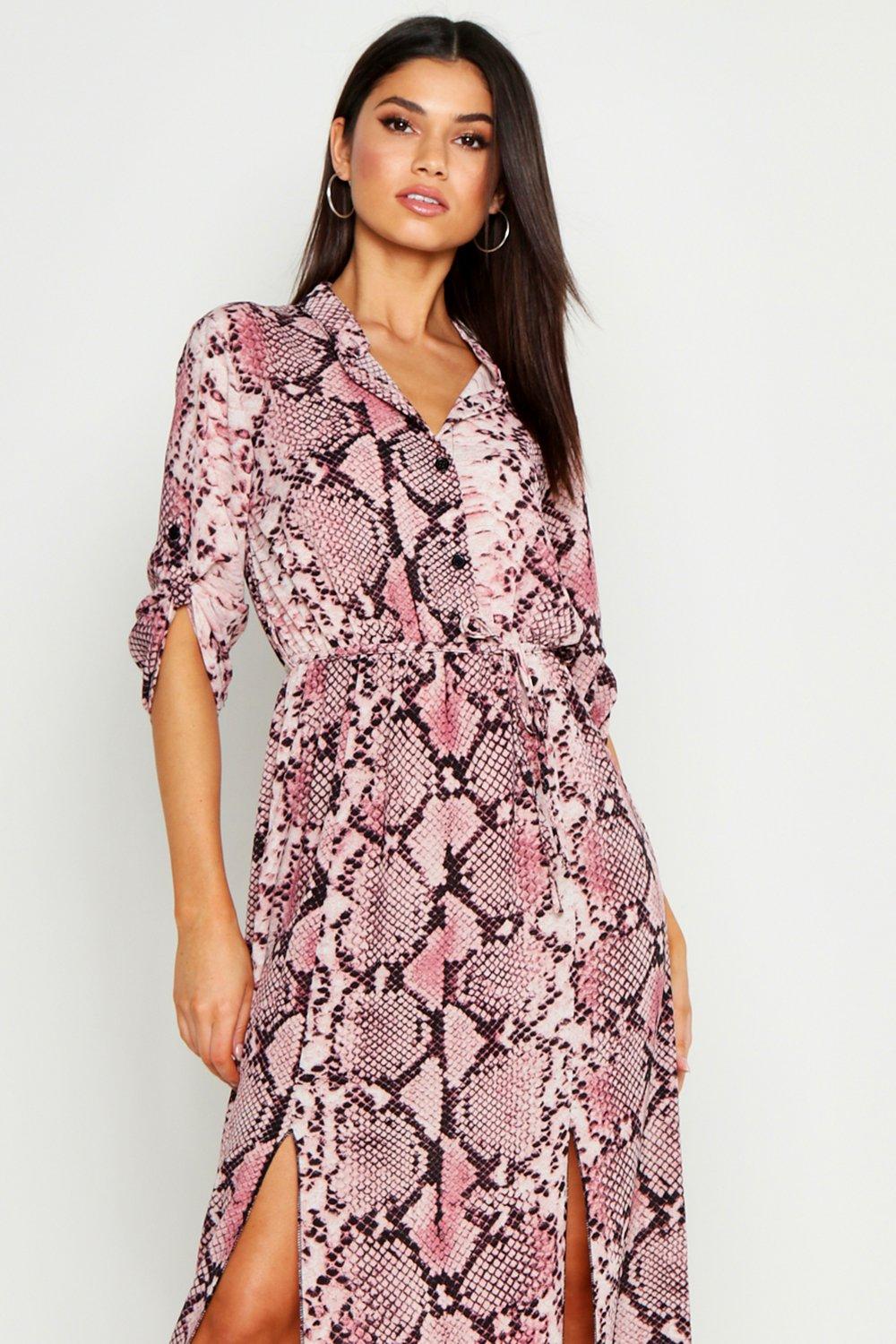 Product Name: Pink snake print shirt dress on sale